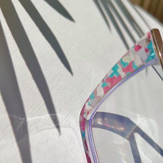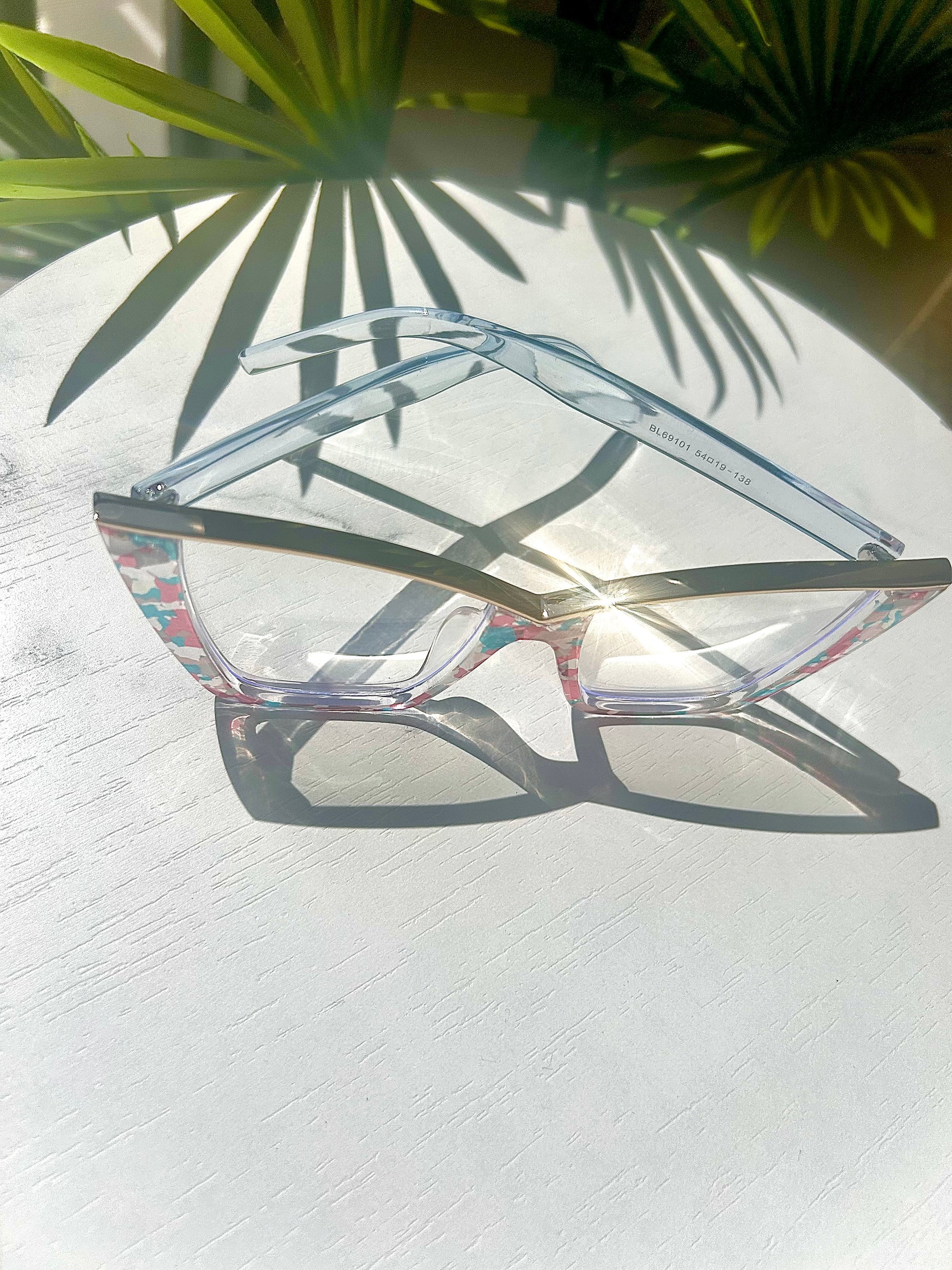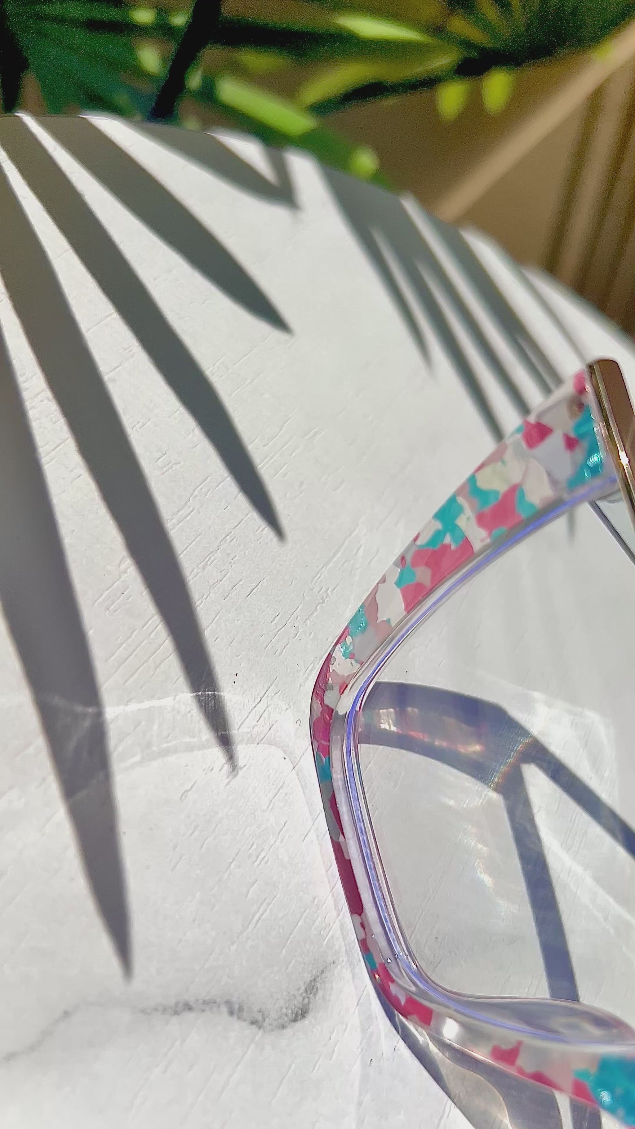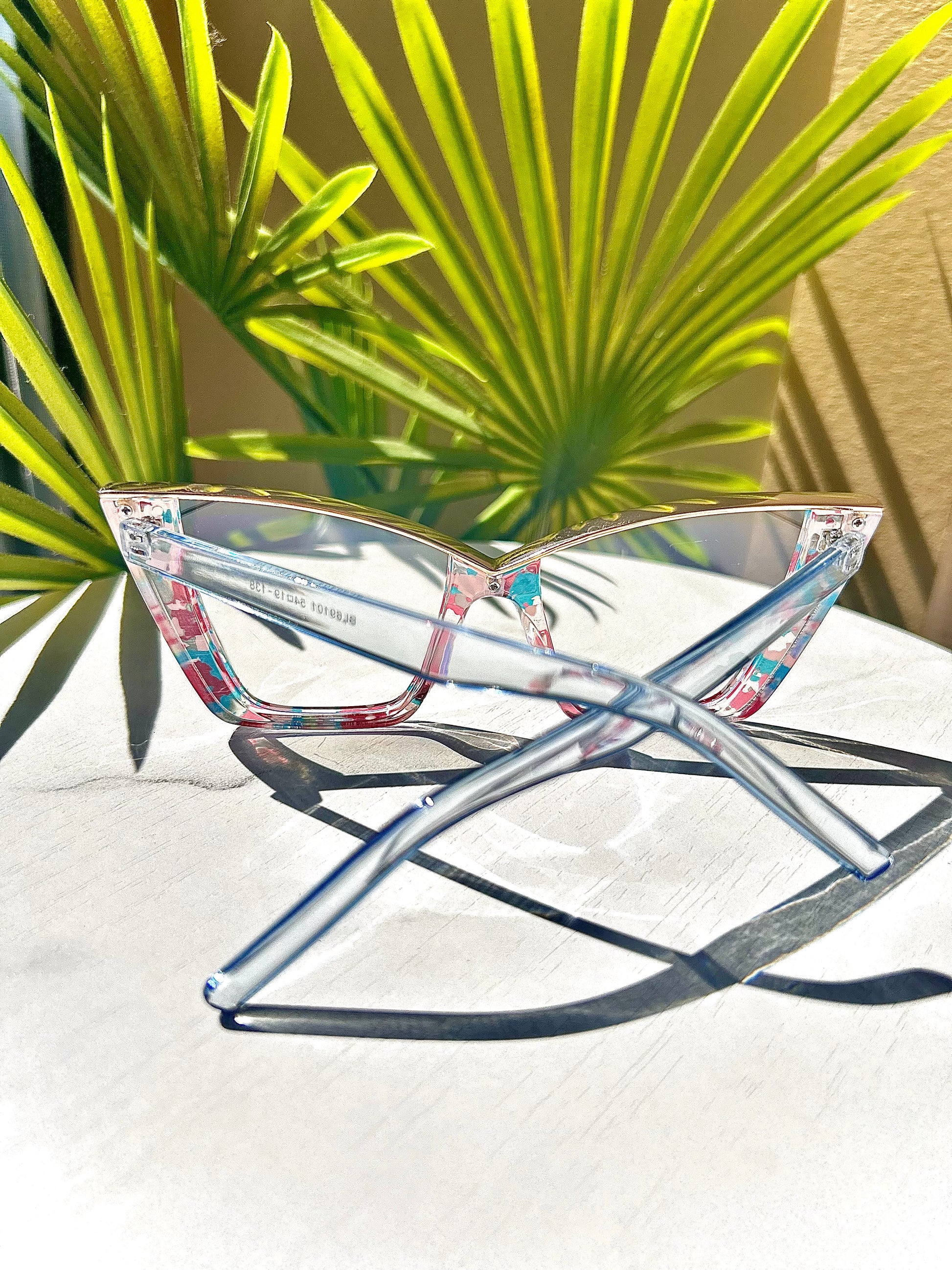 Turn heads with these oversized pink confetti cat-eye frames that mix bold style with everyday wearability. Designed with a clear lens, these fashion-forward glasses add instant personality to any outfit—whether you’re pairing them with casual fits or dressing up for a night out. Lightweight yet durable, they’re perfect for making a statement without sacrificing comfort.